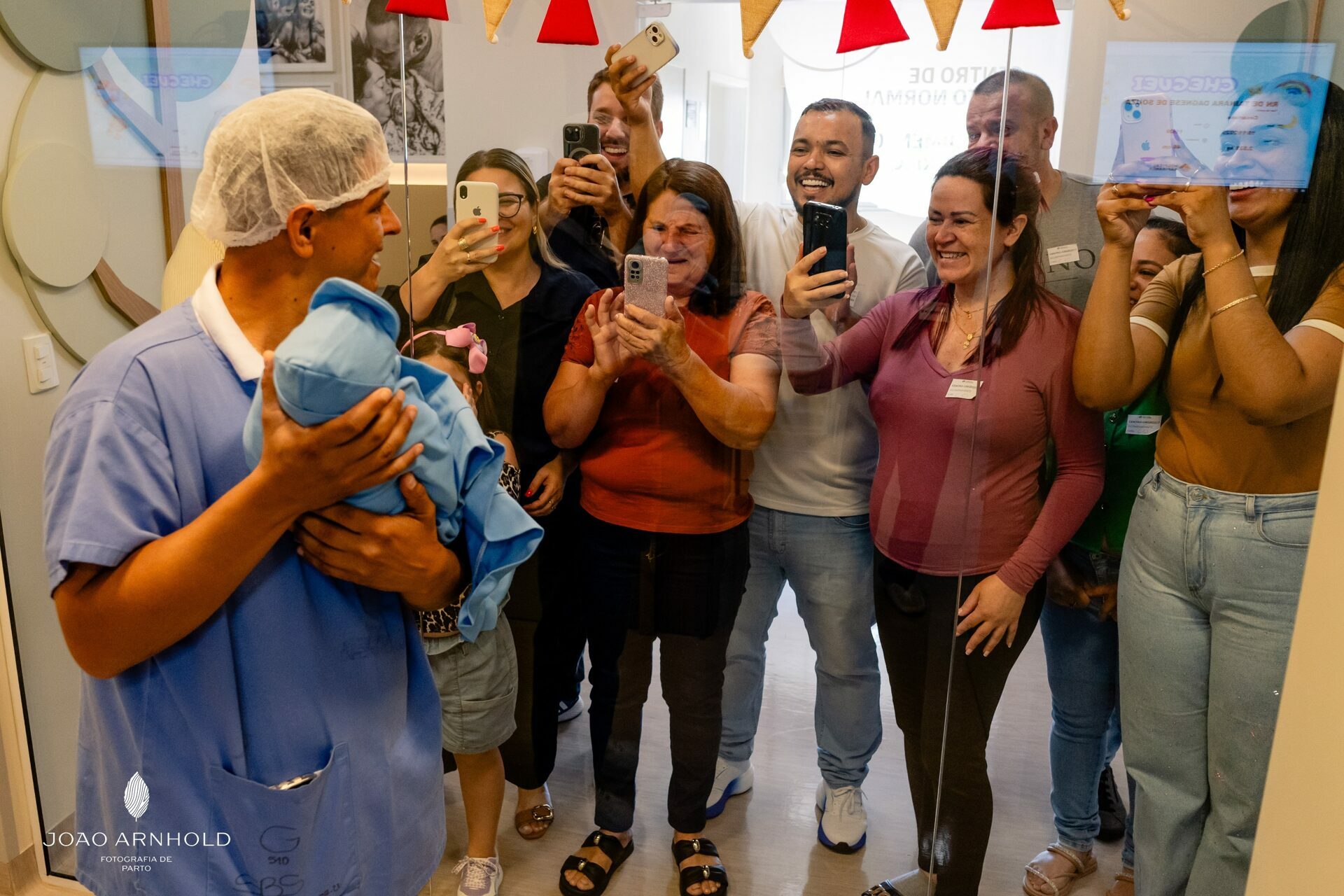 Chegando na maternidade encontrei um casal radiante, com sorrisos que entregavam a emoção daquele instante, havia um brilho intenso no olhar, algo que qualquer pessoa perceberia ao se aproximar. Era possível sentir a conexão profunda com aquele momento tão esperado, construído ao longo de meses de sonhos, planos e expectativas.